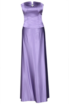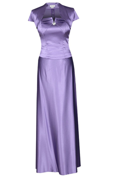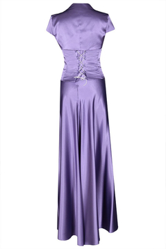 Szykuje się jakaś wyjątkowa impreza, bal karnawałowy a może wieczór panieński w określonej atmosferze? Długa suknia z satyny gładkiej lekko połyskującej. Bardzo elegancka. Dopasowana góra, gorset wiązany pięknie podkreśli szczupłą talię. Ramiona odkryte. Bolerko w zestawie.