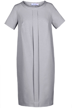 Sukienka, wykonana z lnu z domieszką poliestru, zapewnia oddychanie ciału, przewiewność i będzie fantastyczna na upalny czas. Nie będzie się też gniotła, dzięki czemu zapewni nieskazitelny wygląd przez cały dzień. Krój minimalistyczny, zbliżony do ołówkowego, długość przed kolano, krótki rękaw, dekolt w łódkę – całość jednak została uzupełniona o plisę, która przechodzi pionowo przez środek sukienki. Podkreśla linię biustu, brzucha, aż do kolan, czyniąc sukienkę wyrafinowaną. Subtelny akcent skupia uwagę, dzięki czemu drobne mankamenty figury schodzą na drugi plan. Zestawienie sukienki z sandałkami na obcasie pozwoli uzyskać oszałamiający efekt, nie sposób nie zwrócić wówczas na siebie uwagi.