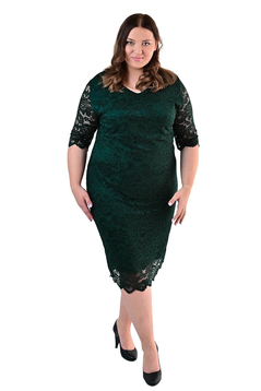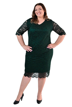 Klasyczna, dopasowana, zwężająca się dołem, ołówkowa sukienka. Dekolt serek. Rękaw krótki. Z tyłu zaszewki taliowe, oraz rozporek pozwalający swobodnie stawiać kroki. Zapinana na suwak kryty z tyłu, ułatwiający zakładanie. Uszyta z elastycznej, niezwykle szykownej koronki. Pod koronką znajduje się bardzo miła w dotyku wiskoza. Sukienka wizytowa, idealna na wesele, studniówkę, sylwester, czy wiele innych uroczystości.