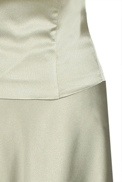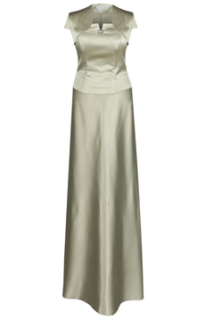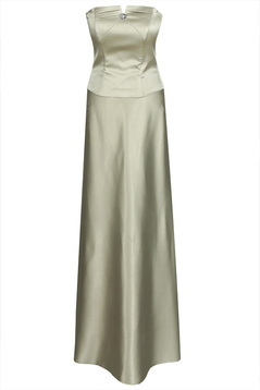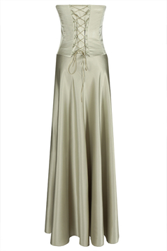 Szykuje się jakaś wyjątkowa impreza, bal karnawałowy a może wieczór panieński w określonej atmosferze? Długa suknia z satyny gładkiej lekko połyskującej. Bardzo elegancka. Dopasowana góra, gorset wiązany pięknie podkreśli szczupłą talię. Ramiona odkryte. Bolerko w zestawie.