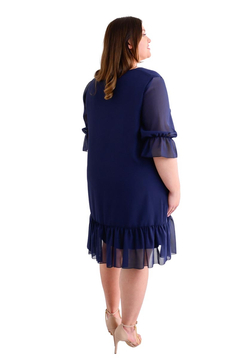 Na dole sukienki szeroka falbana. Rękawy oraz dół wykończony mereżką.