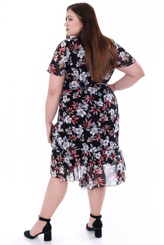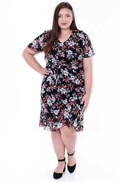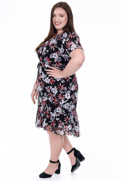 Sukienka FSU1076 CZARNY szaro amarantowe kwiaty
