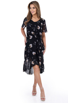 Sukienka FSU1076 CZARNY brązowe tulipany
