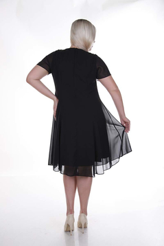 Piękna, niesamowicie kobieca sukienka. Z połączenia dwóch materiałów - spodnia tkanina a na niej transparentny szyfon, który nadaje kreacji całą skromną elegancję. Rozkloszowany fason, długość w kolanko i bucik na obcasie to sam wdzięk i klasa. Wybierając jasne/pastelowe kolory stworzysz stylizację na komunię lub chrzciny. Natomiast ciemne kolory w zestawieniu z biżuterią lub ciekawymi błyskotkami z pewnością olśniewająco będziesz wyglądać na weselu lub innej wieczorowej imprezie.  Do tego dobierz elegancki żakiet bądź szal. A może szukasz coś na popołudniowe spotkanie z przyjaciółką? wybierz nasz model w groszki, włóż letni kapelusz i ciesz się aurą wiosny/lata. Występuje w palecie wielu kolorów i wzorów. Idealna na wiosenne i letnie dni. Polecamy kobietom w różnym wieku.
