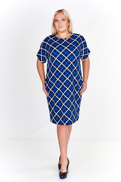 Sukienka FSU1116 GRANATOWY+CHABROWY kratka