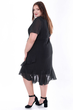 Sukienka jest uszyta z delikatnego szyfonu  przez co ładnie układa się na figurze i nie krępuje ruchów.