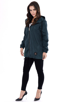 Kurtka nie posiada podszewki, ale posiada duży kaptur chroniący przed wiatrem i deszczem  który stanowi ochronę przed wiatrem i drobnymi opadami atmosferycznymi. Kaptur nie jest odpinany. Możesz go regulować za pomocą materiałowych troczków. Po długości kurtka zapinana jest na suwak. Kurtka wiatrówka  posiada dwie kieszenie. Na lewym dole  kurtki naszyta jest ozdobna naszywka.