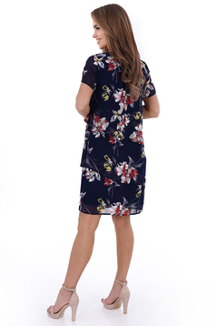 Sukienka FSU1115 GRANATOWY czerwono szare kwiaty