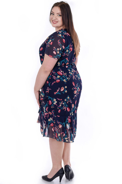 Sukienka jest uszyta z delikatnego szyfonu przez co ładnie układa się na figurze i nie krępuje ruchów.