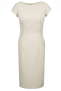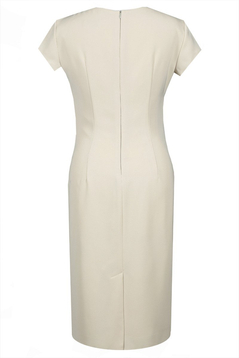 Klasyczna, dopasowana sukienka. Uszyta została z eleganckiej, stonowanej tkaniny. Jest to materiał stabilny, dlatego dobierając rozmiar należy uwzględnić kilka centymetrów luzu. Dekolt łódka. Rękaw krótki. Pod biustem odcięcie, podkreślone wypustką. Na środku tyłu suwak kryty, na dole rozporek zakładany ułatwiający swobodne chodzenie. Jest podszewka. Sukienka powstała z myślą o kobietach dojrzałych, ceniących elegancki wygląd. Do sukienki idealnie pasuje żakiet o numerze FZA612. Został on uszyty z tej samej tkaniny. Razem tworzą piękny komplet, idealny na wesele, komunie i wiele innych uroczystości.