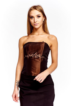 Gorset FGR042 CZEKOLADOWY CIEMNY tafta
