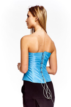 Gorset FGR042 BŁEKITNY CIEMNY tafta