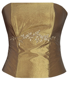 Gorset z fiszbinami wiązany z tyłu, Gorsetem podkreślisz piękne ramiona i uwydatnisz biust, wiązaniem z tyłu dobrze go dopasujesz. Materiał - połyskująca tafta z kwiatowym haftem.  Dopasowana góra, podkreślona talia  to klasa i styl. Gorset uzupełni twoją garderobę, można nosić go zarówno do spodni jak i spódnic. Idealny  dla pań, które lubią podkreślić swoją sylwetkę.