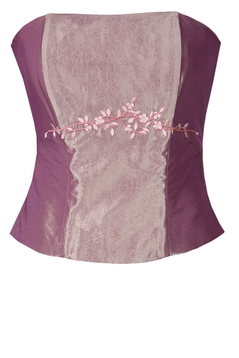 Gorset z fiszbinami wiązany z tyłu, Gorsetem podkreślisz piękne ramiona i uwydatnisz biust, wiązaniem z tyłu dobrze go dopasujesz. Materiał - połyskująca tafta z kwiatowym haftem.  Dopasowana góra, podkreślona talia  to klasa i styl. Gorset uzupełni twoją garderobę, można nosić go zarówno do spodni jak i spódnic. Idealny  dla pań, które lubią podkreślić swoją sylwetkę.