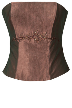 Gorset z fiszbinami wiązany z tyłu, Gorsetem podkreślisz piękne ramiona i uwydatnisz biust, wiązaniem z tyłu dobrze go dopasujesz. Materiał - połyskująca tafta z kwiatowym haftem.  Dopasowana góra, podkreślona talia  to klasa i styl. Gorset uzupełni twoją garderobę, można nosić go zarówno do spodni jak i spódnic. Idealny  dla pań, które lubią podkreślić swoją sylwetkę.