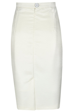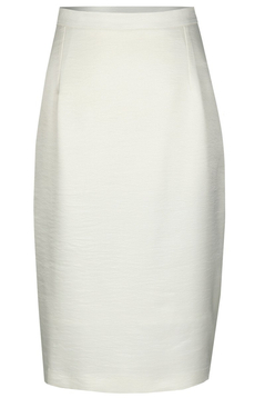 Klasyczna, ołówkowa spódnica. W tali pasek o szerokości 3 cm, zapinany z tyłu na 1 guzik. Suwak kryty. Na dole rozporek zakładany, ułatwiający chodzenie. Uszyta ze stabilnej tkaniny. Jest podszewka. Dół podszyty ściegiem krytym. Bardzo uniwersalna spódnica, w zależności od pozostałych części garderoby, może mieć szerokie zastosowanie, np. w połączeniu z białą bluzką tworzy strój wizytowy, w zestawieniu z gładkim golfem – odpowiedni ubiór do pracy.