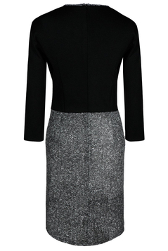 Sukienka codzienna. Uszyta z elastycznej i miłej w dotyku dzianiny. Cięcia piersiowe przebiegają od góry i przechodzą w małe kontrafałdy, tworząc dodatkowy luz w biodrach. Dekolt wykończony lamówką. Rękaw długości ¾. Z tyłu na środku suwak kryty. Bez podszewki. Materiały nie ulegają gnieceniu. Doskonała np. do pracy w biurze lub spotkania rodzinne oraz wiele innych okazji. Dedykowana kobietom w różnym wieku, zwłaszcza tym posiadającym pełniejsze biodra.