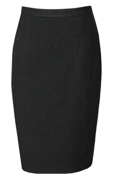 Klasyczna, ołówkowa spódnica. W tali pasek o szerokości 3 cm, zapinany z tyłu na 1 guzik. Suwak kryty. Na dole rozporek zakładany, ułatwiający chodzenie. Uszyta ze stabilnej tkaniny. Jest podszewka. Dół podszyty ściegiem krytym. Bardzo uniwersalna spódnica, w zależności od pozostałych części garderoby, może mieć szerokie zastosowanie, np. w połączeniu z białą bluzką tworzy strój wizytowy, w zestawieniu z gładkim golfem – odpowiedni ubiór do pracy.