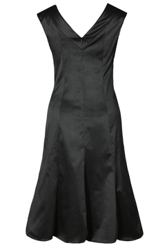 Sukienka o linii trapezu. Dekolt serek. Ramiączka szerokie - 9 cm. Bez rękawa. Na biuście ozdobne marszczenia. Na środku przodu broszka. Pod biustem odcięcie, poniżej cięcia pionowe. Suwak kryty z tyłu. Sukienka uszyta z satyny. Jest to tkanina z delikatnym połyskiem, elastyczna, nie ulega nadmiernemu gnieceniu i mechaceniu. Jest podszewka. Sukienka idealna na wesela, komunie i wiele innych okazji.