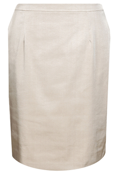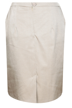 Klasyczna, ołówkowa spódnica. W tali pasek o szerokości 3 cm, zapinany z tyłu na 1 guzik. Suwak kryty. Na dole rozporek zakładany, ułatwiający chodzenie. Uszyta ze stabilnej tkaniny. Jest podszewka. Dół podszyty ściegiem krytym. Bardzo uniwersalna spódnica, w zależności od pozostałych części garderoby, może mieć szerokie zastosowanie, np. w połączeniu z białą bluzką tworzy strój wizytowy, w zestawieniu z gładkim golfem – odpowiedni ubiór do pracy.