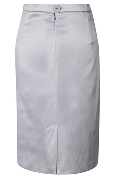 Klasyczna, ołówkowa spódnica. W tali pasek o szerokości 3 cm, zapinany z tyłu na 1 guzik. Suwak kryty. Na dole rozporek zakładany, ułatwiający chodzenie. Uszyta ze stabilnej tkaniny. Jest podszewka. Dół podszyty ściegiem krytym. Bardzo uniwersalna spódnica, w zależności od pozostałych części garderoby, może mieć szerokie zastosowanie, np. w połączeniu z białą bluzką tworzy strój wizytowy, w zestawieniu z gładkim golfem – odpowiedni ubiór do pracy.