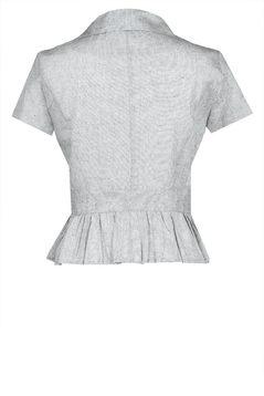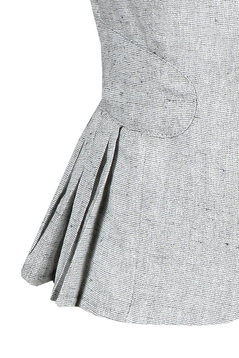 Szykuje się jakaś specjalna okazja, impreza rodzinna, wesele? Piękny żakiet -klasyka elegancji. W niezwykle kobiecym stylu, charakterystyczne zakładki po bokach jako zdobienie a la baskinka. Zapinany na pięć guzików. Len to klasyka a w takim wydaniu to efektowny element naszej garderoby. W połączeniu z sukienką lub spódnicą możesz stworzyć szykowny powiew stylizacji na wiosnę/lato.