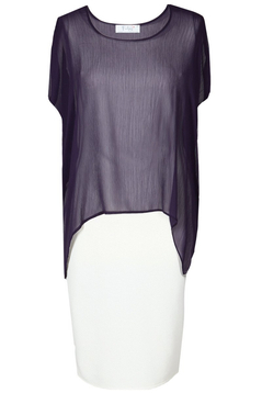Sukienka FSU620 EKRI+ ŚLIWKOWY CIEMNY