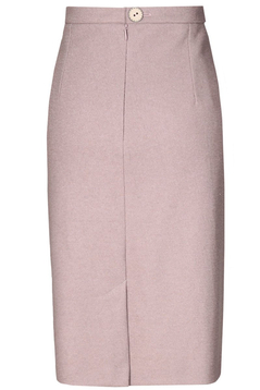 Klasyczna, ołówkowa spódnica. W tali pasek o szerokości 3 cm, zapinany z tyłu na 1 guzik. Suwak kryty. Na dole rozporek zakładany, ułatwiający chodzenie. Uszyta ze stabilnej tkaniny. Jest podszewka. Dół podszyty ściegiem krytym. Bardzo uniwersalna spódnica, w zależności od pozostałych części garderoby, może mieć szerokie zastosowanie, np. w połączeniu z białą bluzką tworzy strój wizytowy, w zestawieniu z gładkim golfem – odpowiedni ubiór do pracy.
