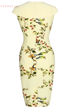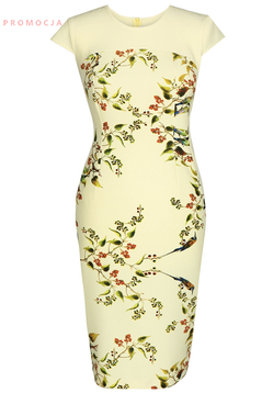 Sukienka FSU686 TURKUSOWY ŚREDNI kwiatSukienka FSU686 ŻÓŁTY JASNY ptakSukienka FSU686 EKRI   LIMONKA kwiaty Sukienka FSU686 EKRI ptak