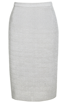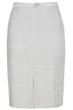 Klasyczna, ołówkowa spódnica. W tali pasek o szerokości 3 cm, zapinany z tyłu na 1 guzik. Suwak kryty. Na dole rozporek zakładany, ułatwiający chodzenie. Uszyta ze stabilnej tkaniny. Jest podszewka. Dół podszyty ściegiem krytym. Bardzo uniwersalna spódnica, w zależności od pozostałych części garderoby, może mieć szerokie zastosowanie, np. w połączeniu z białą bluzką tworzy strój wizytowy, w zestawieniu z gładkim golfem – odpowiedni ubiór do pracy.