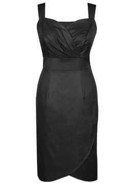 Dopasowana sukienka. Dekolt sercowe karo. Ramiączka szerokie - 5 cm. Bez rękawa. Odcięcie w talii, podkreślone paskiem. Karczek przodu oraz dół zakładane kopertowo. Suwak kryty w lewym boku. Sukienka uszyta z tkaniny delikatnie elastycznej. Nie ulega nadmiernemu gnieceniu i mechaceniu. Jest podszewka. Dół wykończony ściegiem krytym. Sukienkę polecamy kobietom młodym, chcącym wyglądać modnie i elegancko.