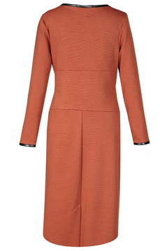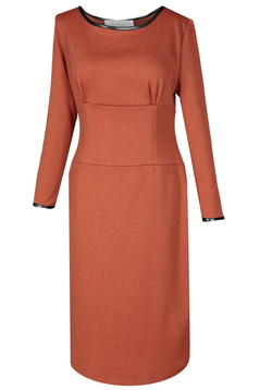 Klasyczna, dopasowana sukienka. Dekolt okrągły. Długi rękaw, Ocięcie w talii, podkreślone paskiem. Z boku suwak kryty, oraz na dole rozporek zakładany. Sukienka została uszyta z elastycznej tkaniny. Miła w dotyku, nie ulega mechaceniu i nadmiernemu gnieceniu. Bez podszewki. Sukienka powstała z myślą o kobietach dojrzałych, lubiących wyglądać modnie i elegancko przy każdej okazji.