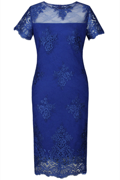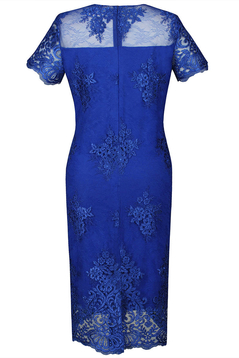 Klasyczna, dopasowana, zwężająca się dołem, ołówkowa sukienka. Dekolt okrągły. Rękaw krótki. Z tyłu rozporek pozwalający swobodnie stawiać kroki. Zapinana na suwak kryty z tyłu, ułatwiający zakładanie. Uszyta z niezwykle szykownej koronki. Pod koronką znajduje się bardzo miła w dotyku wiskoza. Dół sukienki oraz dół rękawa, został wykończony fabrycznym brzegiem koronki. Sukienka wizytowa, idealna na wesele, studniówkę, sylwester, oraz wiele innych uroczystości.
