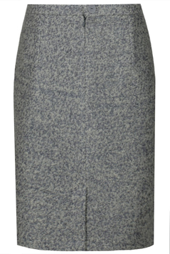 Klasyczna, ołówkowa spódnica. W tali pasek o szerokości 3 cm, zapinany z tyłu na 1 guzik. Suwak kryty. Na dole rozporek zakładany, ułatwiający chodzenie. Uszyta ze stabilnej tkaniny. Jest podszewka. Dół podszyty ściegiem krytym. Bardzo uniwersalna spódnica, w zależności od pozostałych części garderoby, może mieć szerokie zastosowanie, np. w połączeniu z białą bluzką tworzy strój wizytowy, w zestawieniu z gładkim golfem – odpowiedni ubiór do pracy.