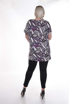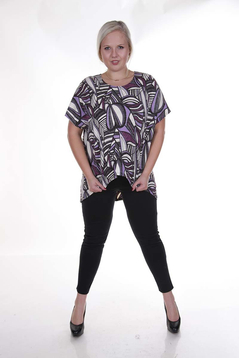 Tunika FTU870 CZARNY + FIOLETOWY wzór