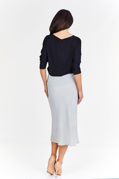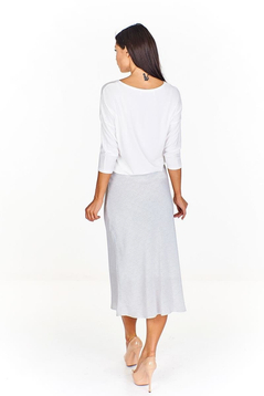 Spódnica o linii trapezu, dopasowana w pasie, natomiast niżej poszerzana. Długość midi, kolano jest zakryte. Doskonale prezentuje się na figurze. Uszyta z delikatnej tkaniny - zorżety. Jest podszewka. Skład surowcowy 100% poliester. Spódnica sprawdzi się w wielu stylizacjach. W połączeniu z prostym topem, tworzy idealny zestaw na co dzień, na spacer, na zakupy. Spódnica powstała z myślą o kobietach w różnym wieku ceniącym dobry wygląd i wygodę podczas użytkowania.