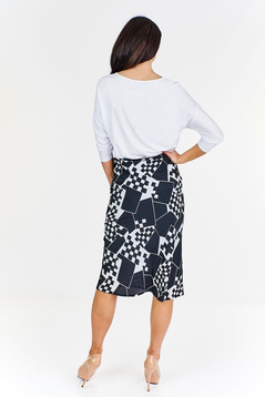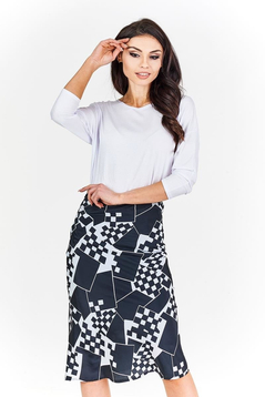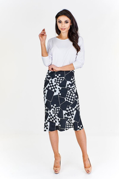 Spódnica o linii trapezu, dopasowana w pasie, natomiast niżej poszerzana. Długość midi, kolano jest zakryte. Doskonale prezentuje się na figurze. Uszyta z delikatnej tkaniny - zorżety. Jest podszewka. Skład surowcowy 100% poliester. Spódnica sprawdzi się w wielu stylizacjach. W połączeniu z prostym topem, tworzy idealny zestaw na co dzień, na spacer, na zakupy. Spódnica powstała z myślą o kobietach w różnym wieku ceniącym dobry wygląd i wygodę podczas użytkowania.