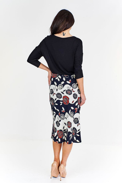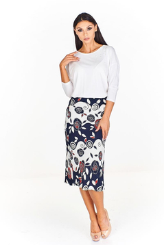 Spódnica FSP771 EKRI + GRANATOWY róże