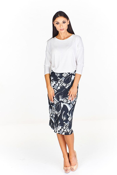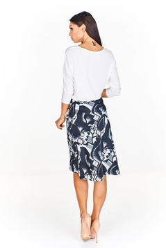 Spódnica o linii trapezu, dopasowana w pasie, natomiast niżej poszerzana. Długość midi, kolano jest zakryte. Doskonale prezentuje się na figurze. Uszyta z delikatnej tkaniny - zorżety. Jest podszewka. Skład surowcowy 100% poliester. Spódnica sprawdzi się w wielu stylizacjach. W połączeniu z prostym topem, tworzy idealny zestaw na co dzień, na spacer, na zakupy. Spódnica powstała z myślą o kobietach w różnym wieku ceniącym dobry wygląd i wygodę podczas użytkowania.