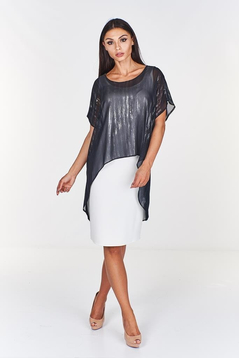 Sukienka FSU620 EKRI + CZARNY srebrna nić