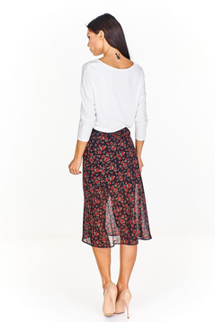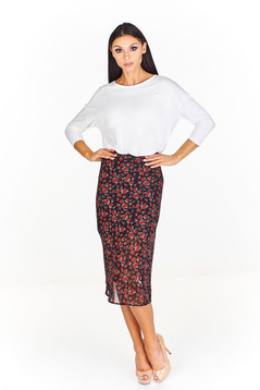 Spódnica o linii trapezu, dopasowana w pasie, natomiast niżej poszerzana. Długość midi, kolano jest zakryte. Doskonale prezentuje się na figurze. Uszyta z delikatnej tkaniny - zorżety. Jest podszewka. Skład surowcowy 100% poliester. Spódnica sprawdzi się w wielu stylizacjach. W połączeniu z prostym topem, tworzy idealny zestaw na co dzień, na spacer, na zakupy. Spódnica powstała z myślą o kobietach w różnym wieku ceniącym dobry wygląd i wygodę podczas użytkowania.