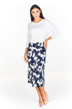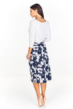 Spódnica FSP771 GRANATOWY + BIAŁY kwiatki