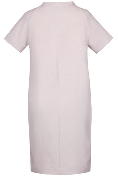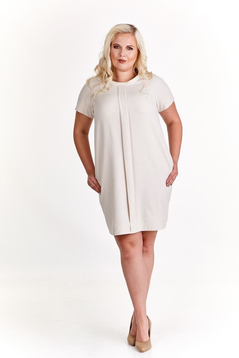 Wyjątkowo lekka, elegancka sukienka. Plisa z przodu dodaje jej wizytowego charakteru. Krótki rękaw. Krój delikatnie taliowany. Skład: 70% len; 25% poliester; 5% elastan