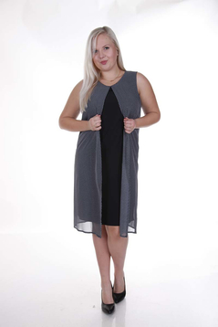 Dopasowana sukienka o prostym kroju, delikatnie taliowana, bez rękawów. Do całości przyszyta szyfonowa narzutka - wzór: małe lub duże kropki. Sukienka jest idealna na upały, ale również dobrze sprawdzi się na przeróżne okazje. Ze szpilkami stworzysz niebanalną stylizację. Skład: 65% Poliester; 32% Poliamid; 3% Elastan