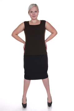Prosta bluzka, uszyta z bardzo elastycznej dzianiny. Dekolt karo, z przodu wykończony obłożeniem, z tyłu podwinięty. Bez rękawa, pachy wykończone lamówką. Idealna na upalne lato. Przeznaczona dla wszystkich dziewczyn i kobiet, bez względu na wiek. Doskonale komponuje się ze wszystkimi częściami garderoby.