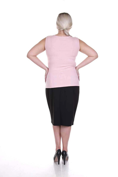 Prosta bluzka, uszyta z bardzo elastycznej dzianiny. Dekolt karo, z przodu wykończony obłożeniem, z tyłu podwinięty. Bez rękawa, pachy wykończone lamówką. Idealna na upalne lato. Przeznaczona dla wszystkich dziewczyn i kobiet, bez względu na wiek. Doskonale komponuje się ze wszystkimi częściami garderoby.