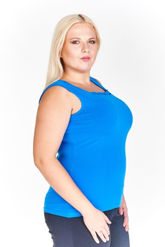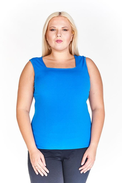Prosta bluzka, uszyta z bardzo elastycznej dzianiny. Dekolt karo, z przodu wykończony obłożeniem, z tyłu podwinięty. Bez rękawa, pachy wykończone lamówką. Idealna na upalne lato. Przeznaczona dla wszystkich dziewczyn i kobiet, bez względu na wiek. Doskonale komponuje się ze wszystkimi częściami garderoby.