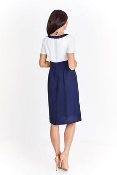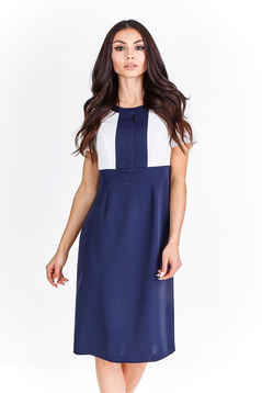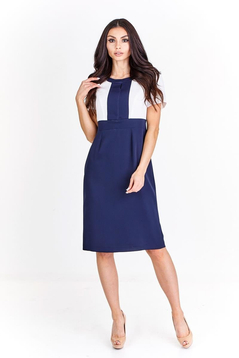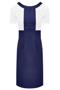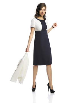 Szykuje się jakaś specjalna  okazja, spotkanie z przyjaciółmi, impreza rodzinna? prosta sukienka uszyta w panelowym połączeniu materiałów w kontrastowych kolorach. Sukienka posiada wysoki stan, przez co nieco wydłuża sylwetkę. Cięcia francuskie podkreślają figórę, Rozporek z tyłu ułatwia poruszanie się. Bardzo wygodna,  materiał ładnie dopasowuje się do figury. Z powodzeniem można do niej nosić marynarki i żakiety. Dekolt klasyczny półokrągły wykończony szeroką plisą. Idealna dla Pań  w każdym wieku.