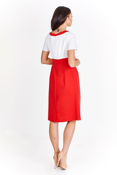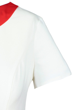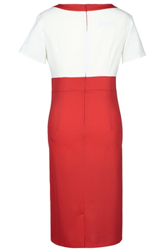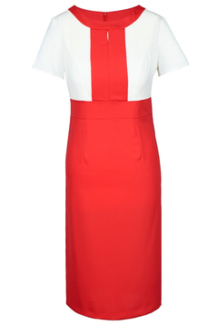 Szykuje się jakaś specjalna  okazja, spotkanie z przyjaciółmi, impreza rodzinna? prosta sukienka uszyta w panelowym połączeniu materiałów w kontrastowych kolorach. Sukienka posiada wysoki stan, przez co nieco wydłuża sylwetkę. Cięcia francuskie podkreślają figórę, Rozporek z tyłu ułatwia poruszanie się. Bardzo wygodna,  materiał ładnie dopasowuje się do figury. Z powodzeniem można do niej nosić marynarki i żakiety. Dekolt klasyczny półokrągły wykończony szeroką plisą. Idealna dla Pań  w każdym wieku.