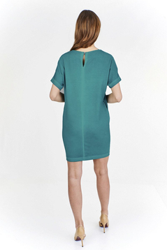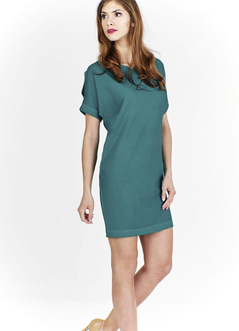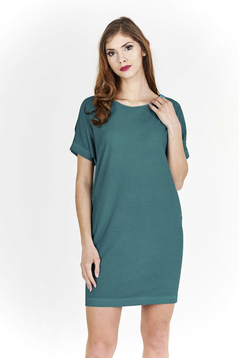 Kimono, luźna sukienka. Uszyta została z miłej w dotyku dzianiny. Dekolt okrągły.  Rękaw kimono rozcięty od góry długość rozcięcia około 12 cm. Tył prosty. Dół wykończony ściegiem krytym. Bez suwaka, bez podszewki. Z tyłu na szyi pęknięcie zapinane na mały guzik. Sukienkę polecamy kobietom w każdym wieku, idealna na co dzień do pracy, jak również na uroczyste prywatne spotkania.